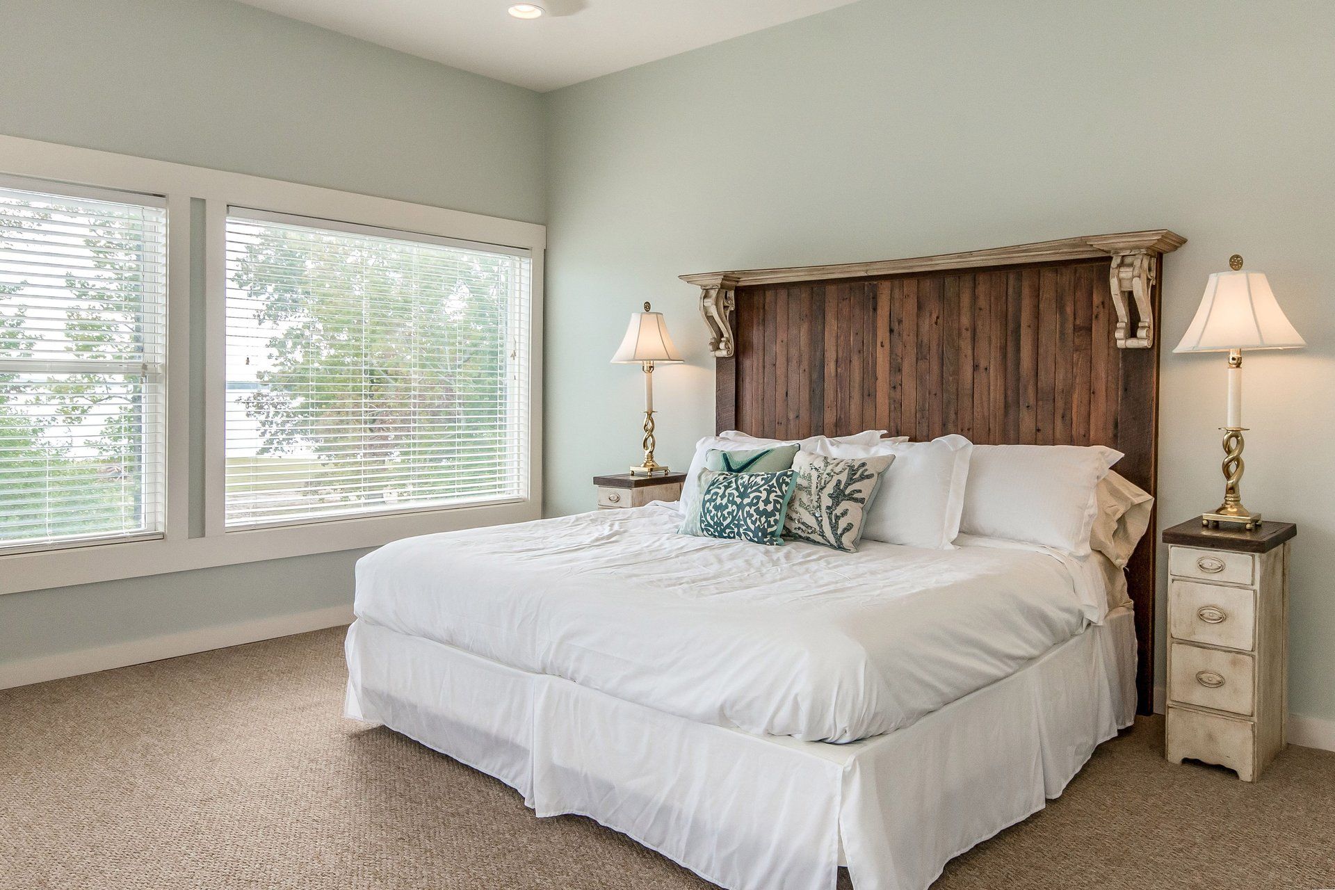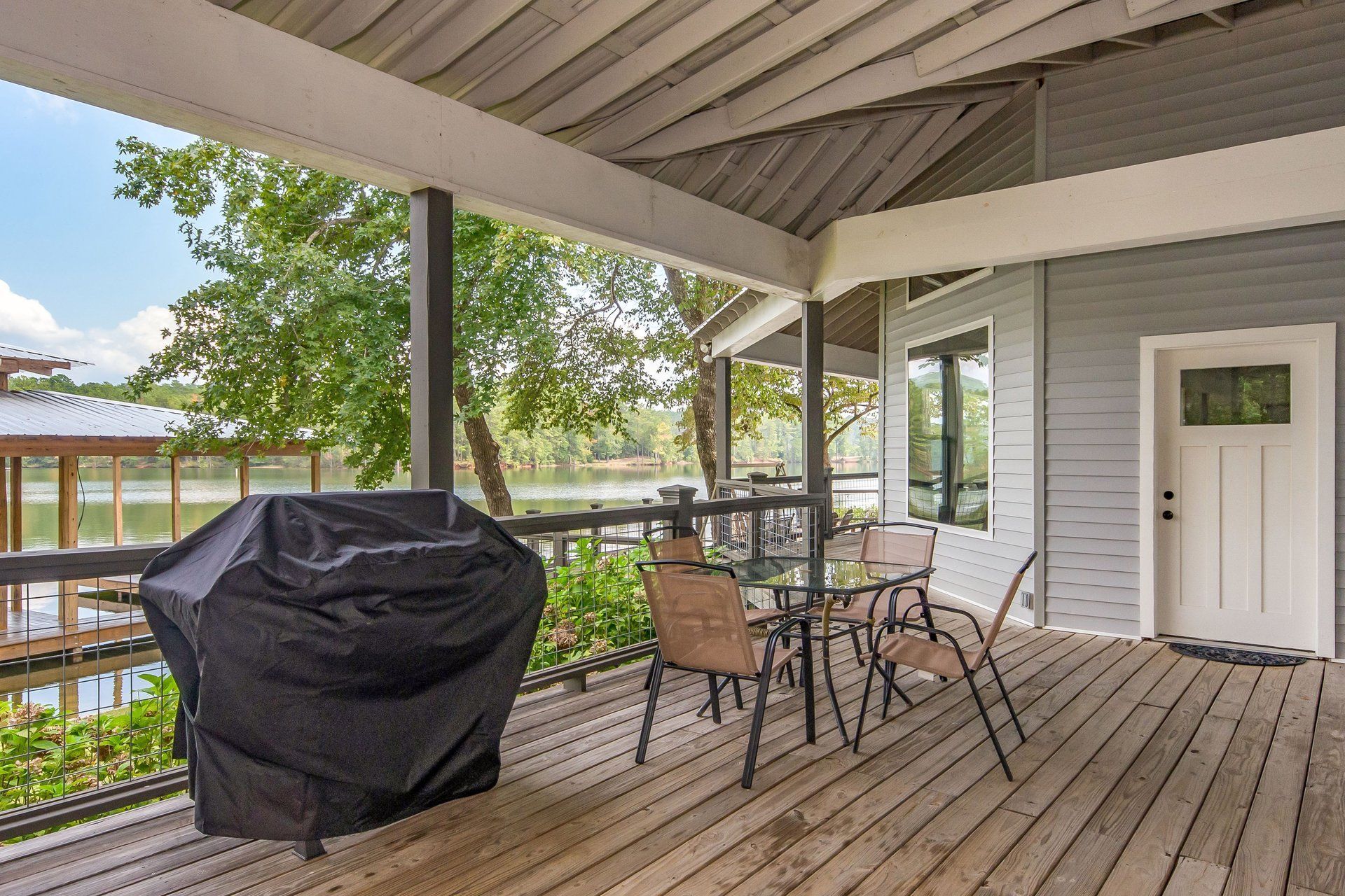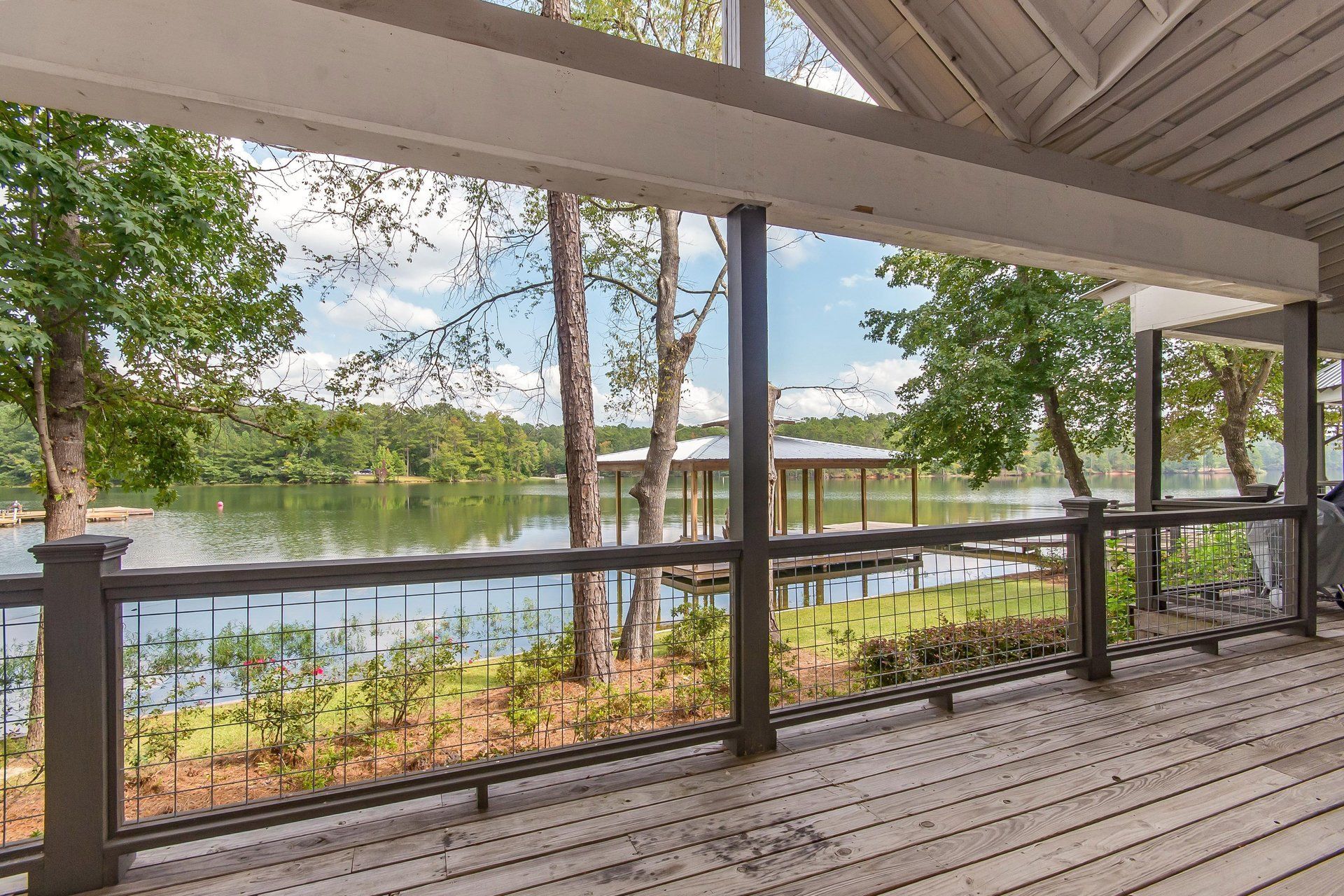 in our 10,000 sf main home has 8 large bedrooms(2 master suites) with 8 private baths, each waterfront with a spectacular view of Lake Martin. A 3 BR 1 BA guesthouse adjoins the main house. The home sits literally on the water. A huge great room (approx. 1000 sf) features classic plank walls and hand scraped hardwood floors and offers panoramic views of the Lake.